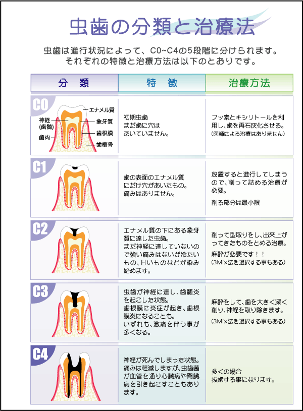 - 虫歯が、できるだけ小さいうちに見つけて治療しましょう。