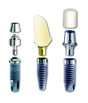 - 人工歯根療法とも言われ、失ってしまった歯がもともとその根にあたる部分を埋めていた顎の骨に人工の歯根を埋め、その上に人工の歯を固定するための土台とする物です。