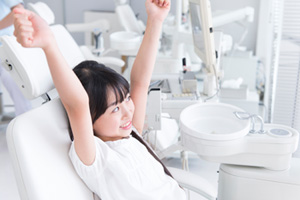 - お子さんが歯医者の雰囲気になれるのを待って治療を進めます。