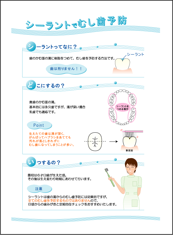 むし歯になってしまって治療をするよりも、治療時の苦痛も無く医療費も治療に比べかからず経済的です。